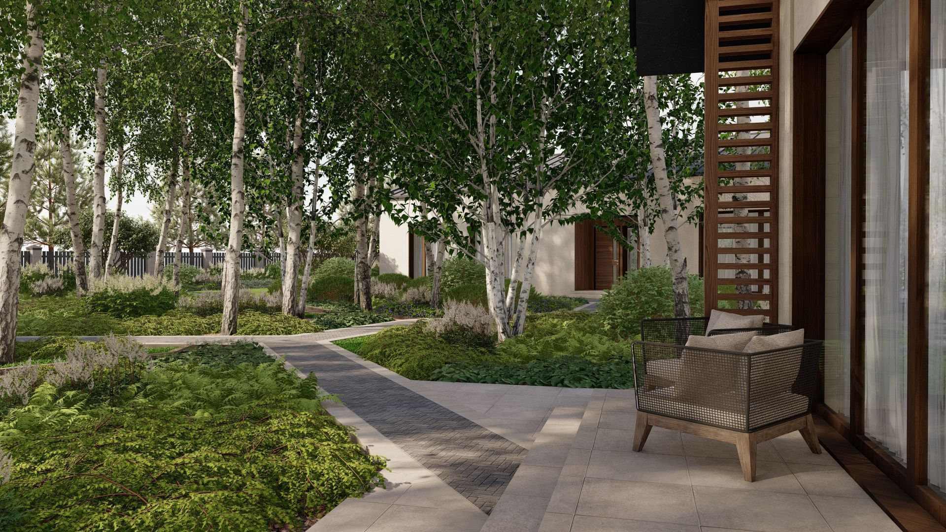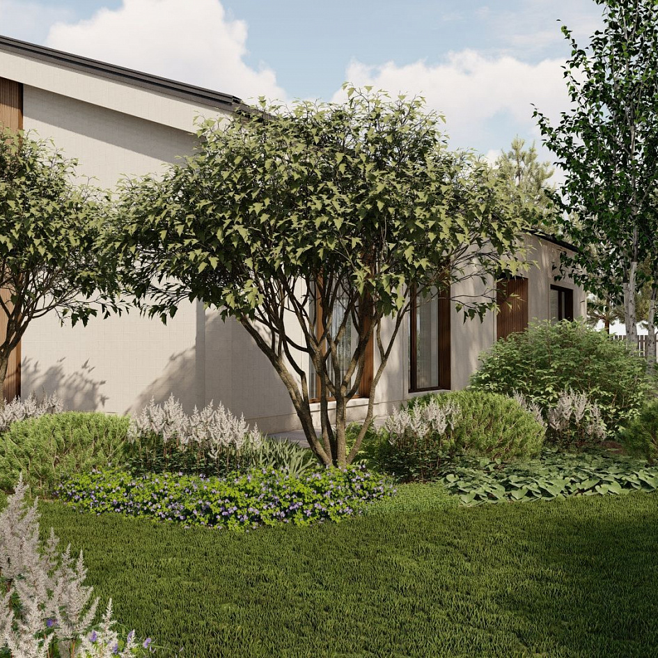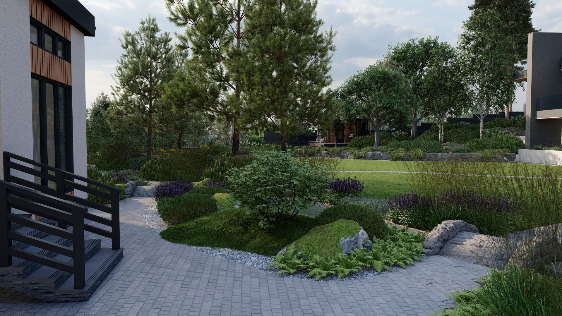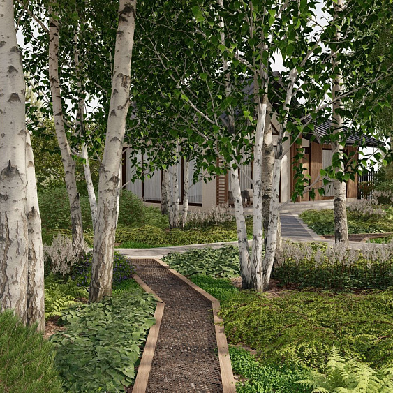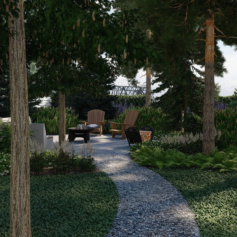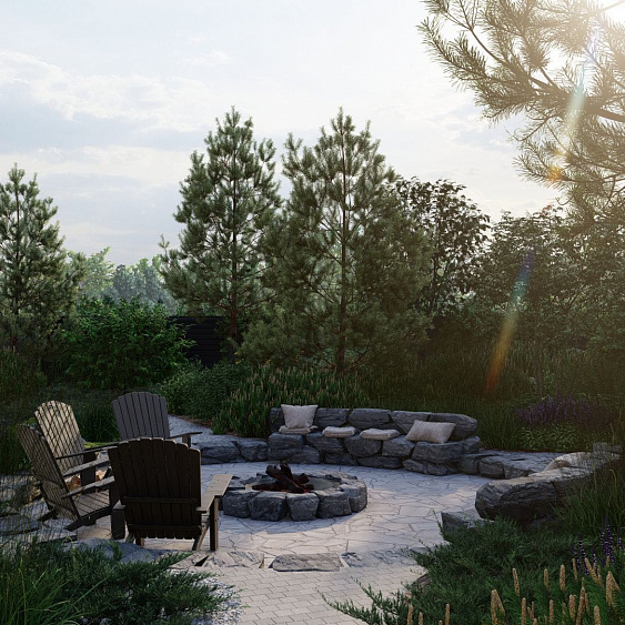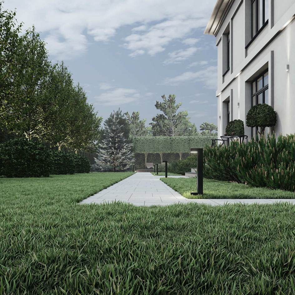 Ландшафтный проект участка общей площадью 52 сотки: генплан, эскиз, фоторендеры, 3D проходка, топографическая съемка, дендроплан, план освещения, спецификации, ведомости.