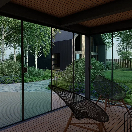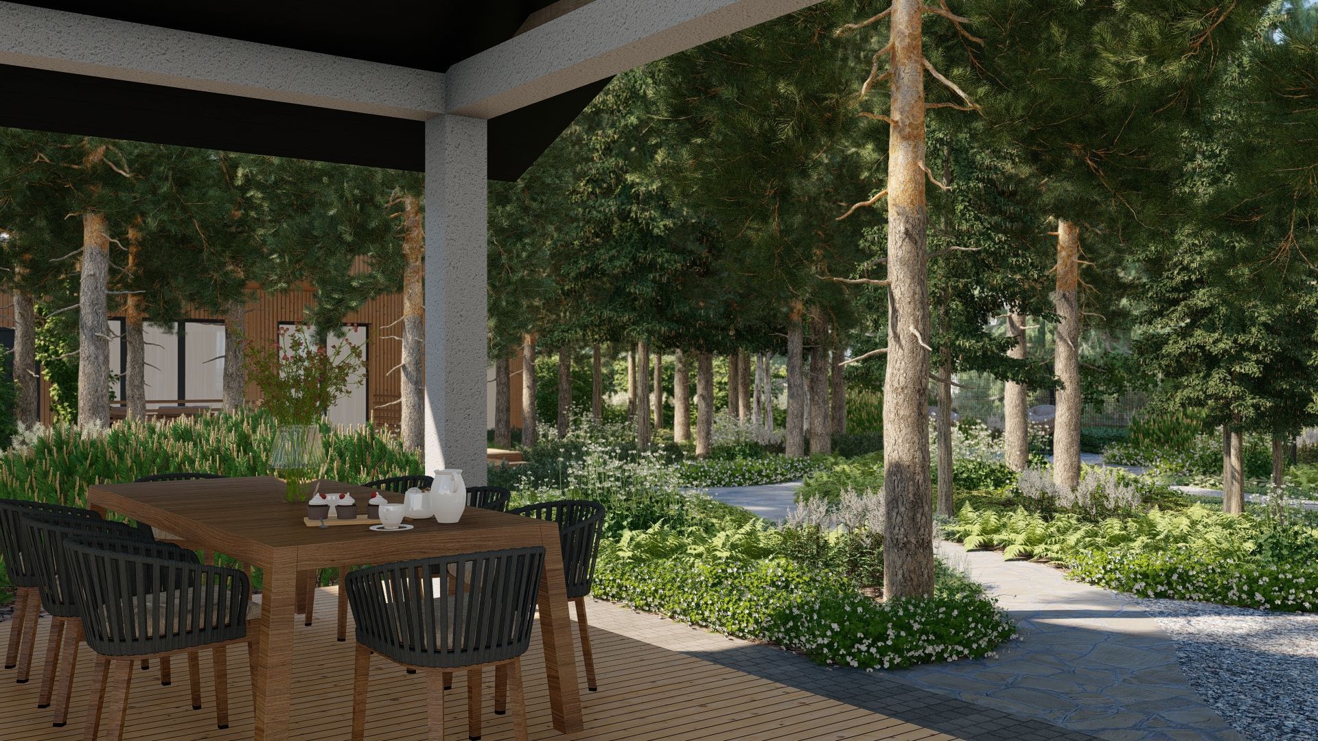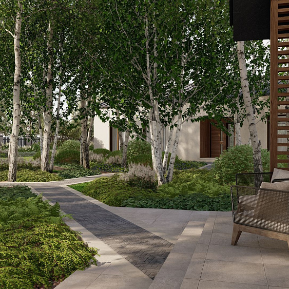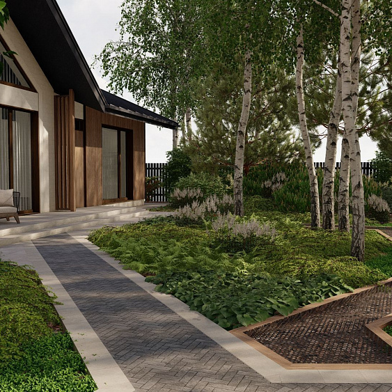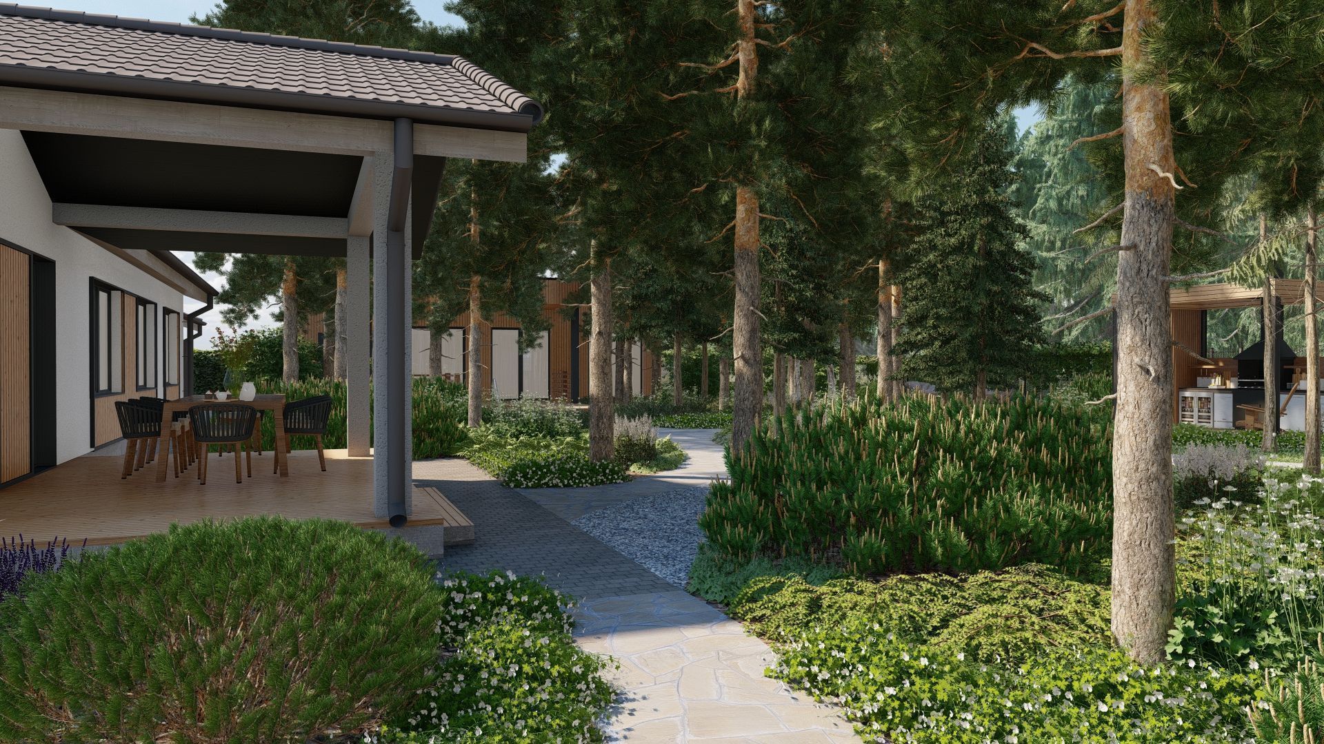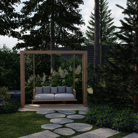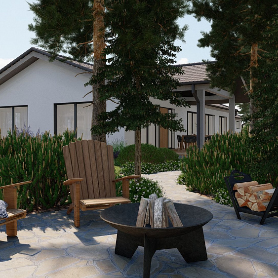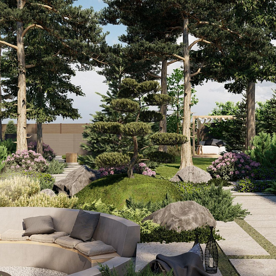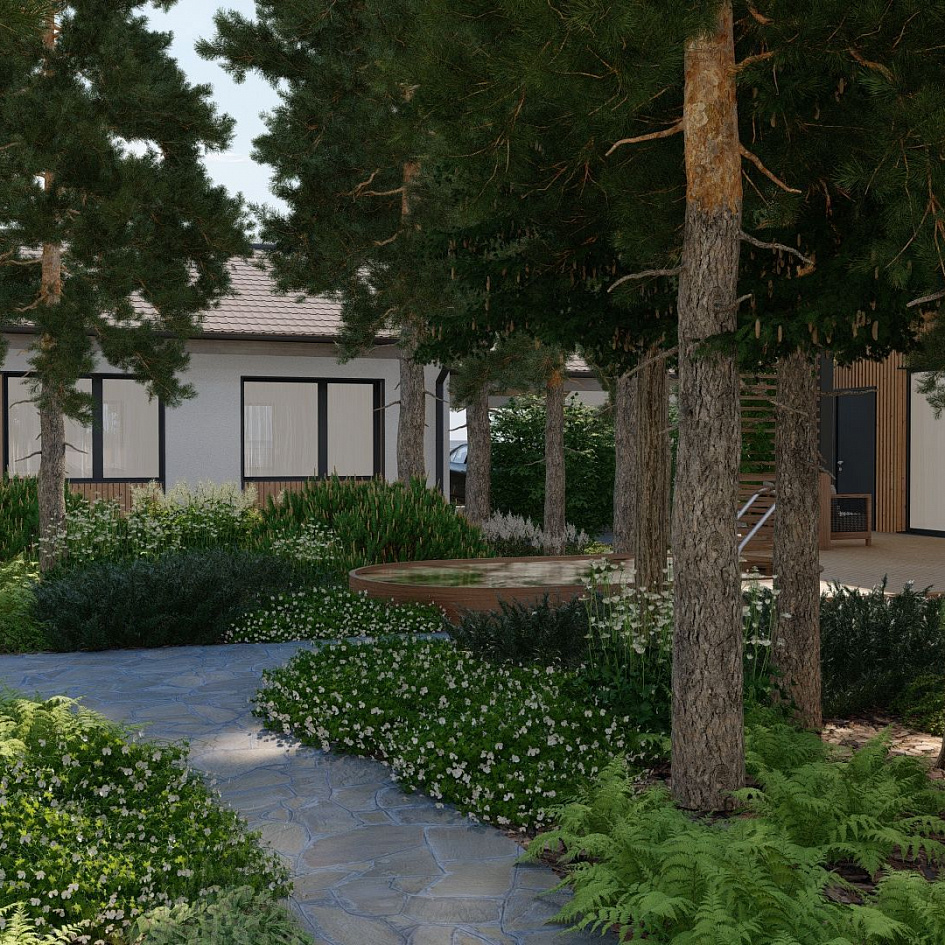 Этот участок изначально был с характером. Вековые сосны и ели, дубы, сложившаяся атмосфера леса — наша главная задача заключалась не в том, чтобы «переделать», а в том, чтобы бережно усилить то, что уже создано природой.