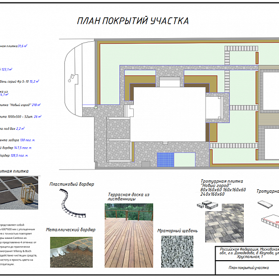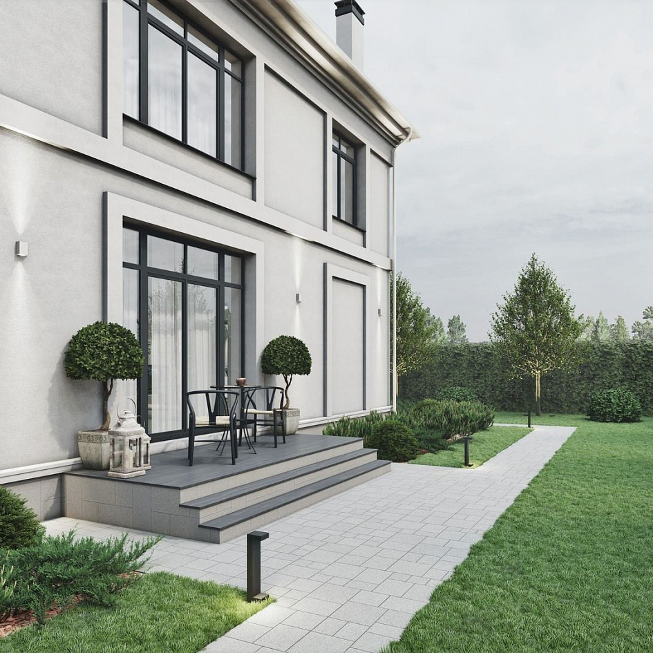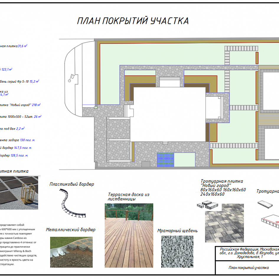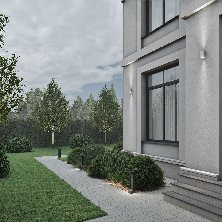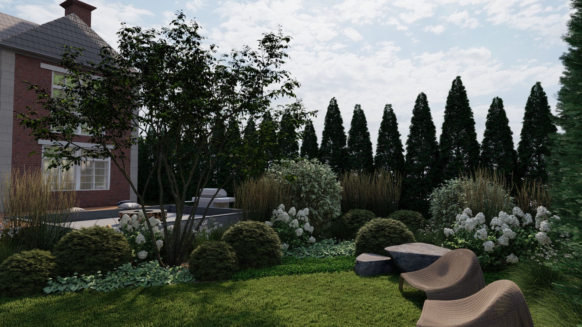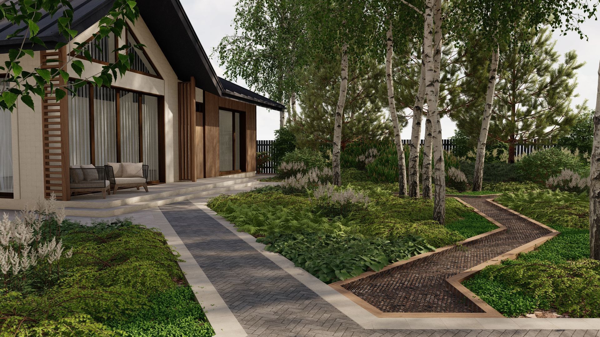 Ландшафтный проект участка общей площадью 12 соток в деревне Юсупово г.о. Домодедово: генплан, эскиз, фоторендеры, топографическая съемка, дендроплан, план освещения, спецификации, ведомости.