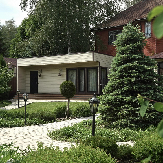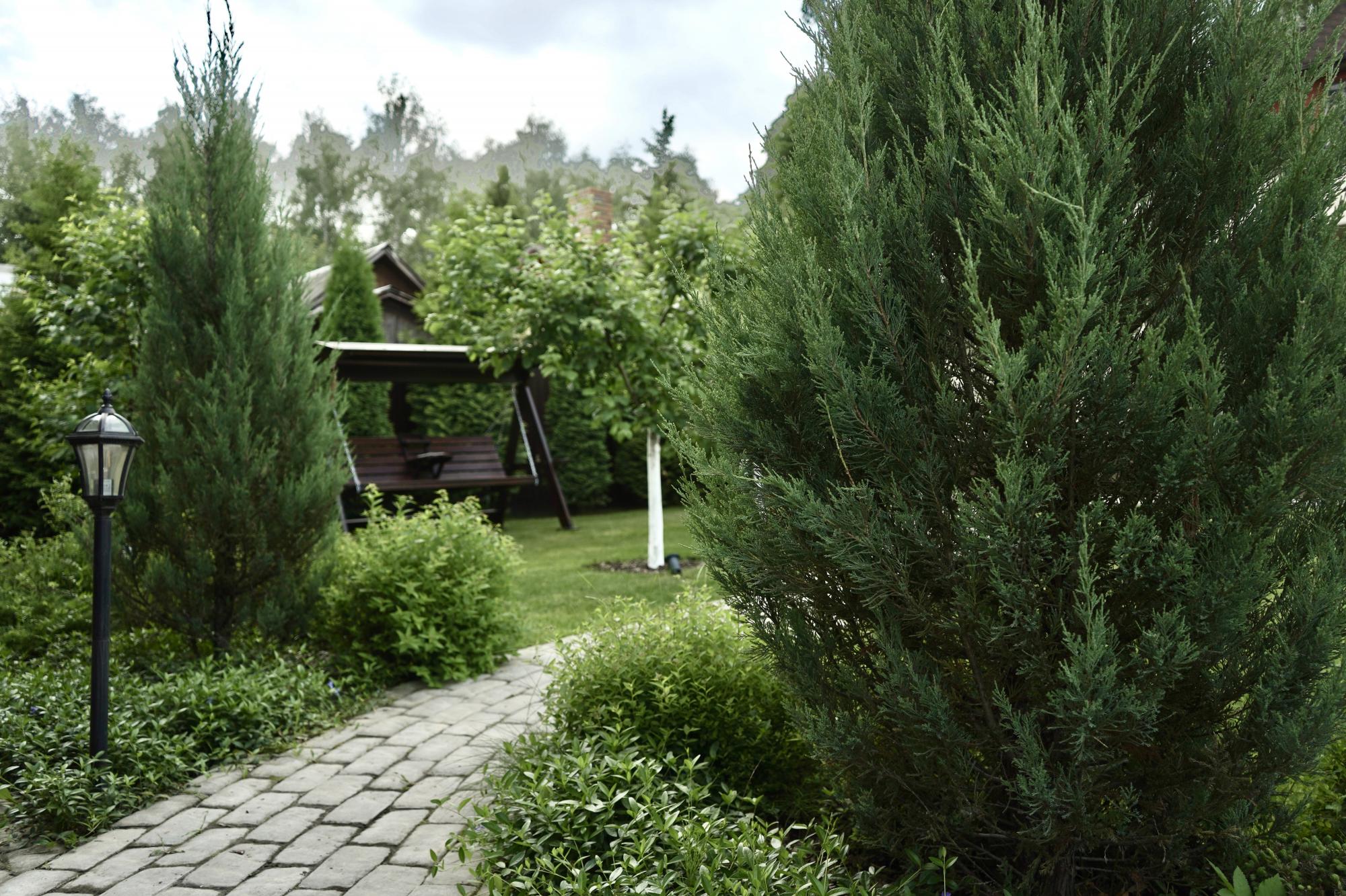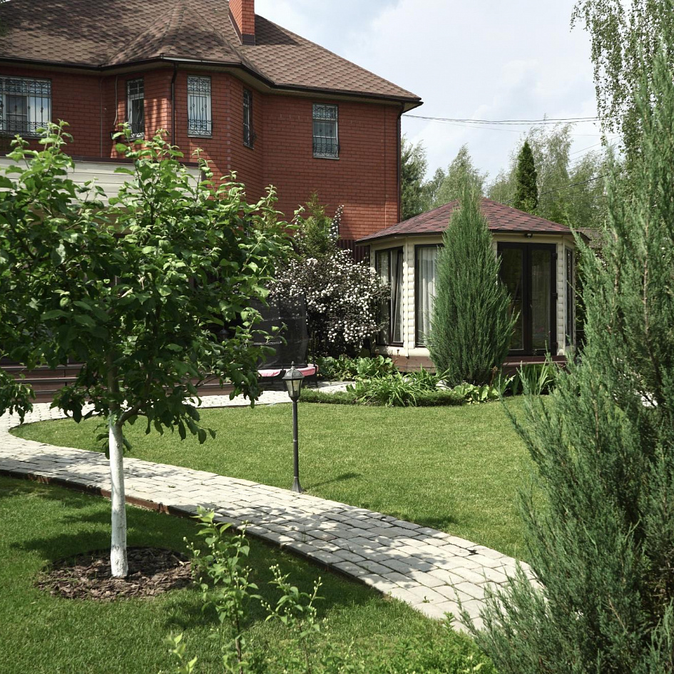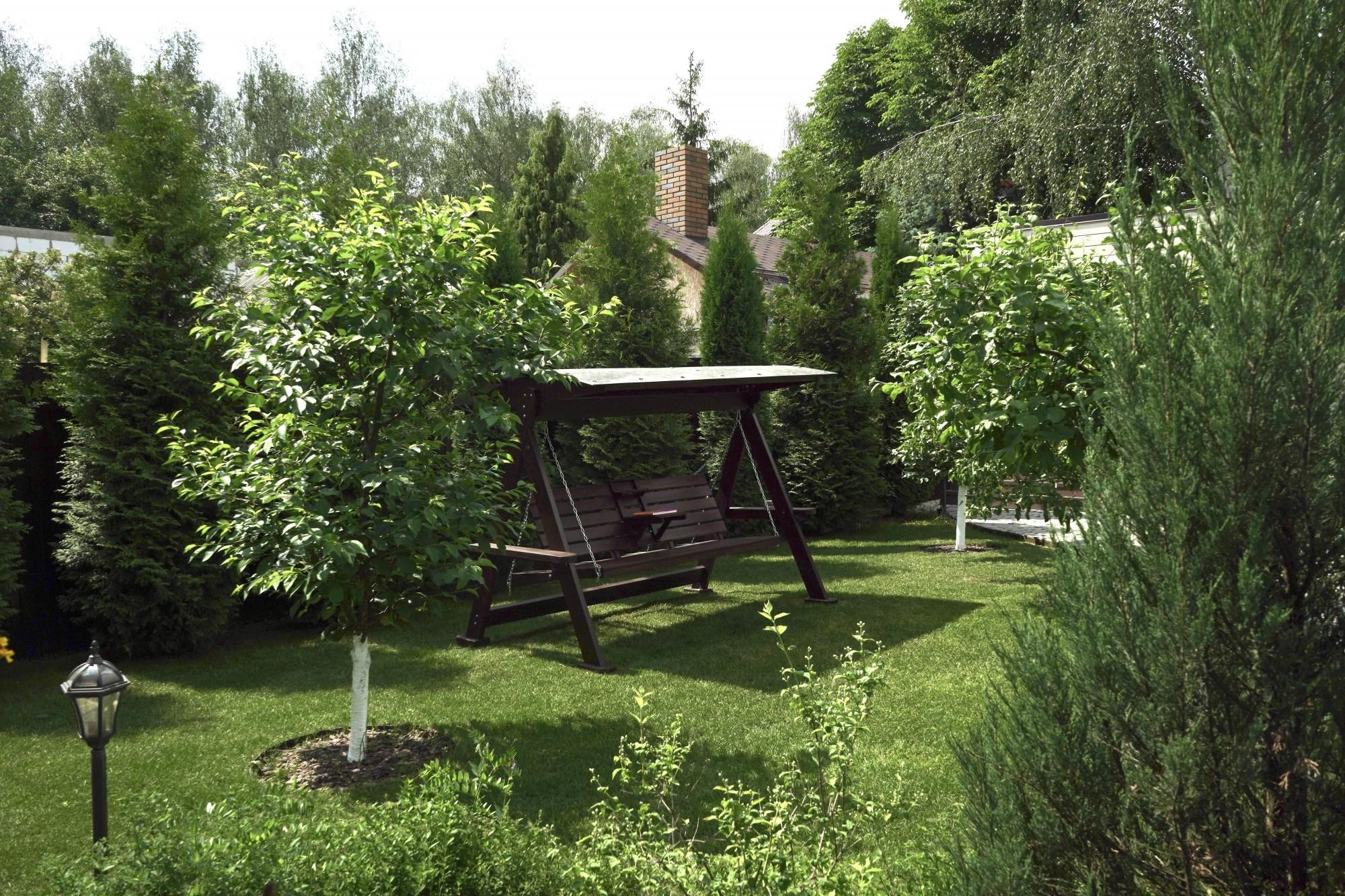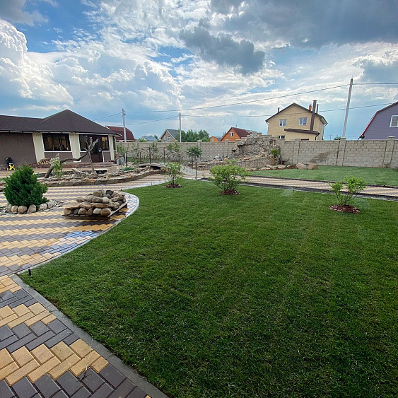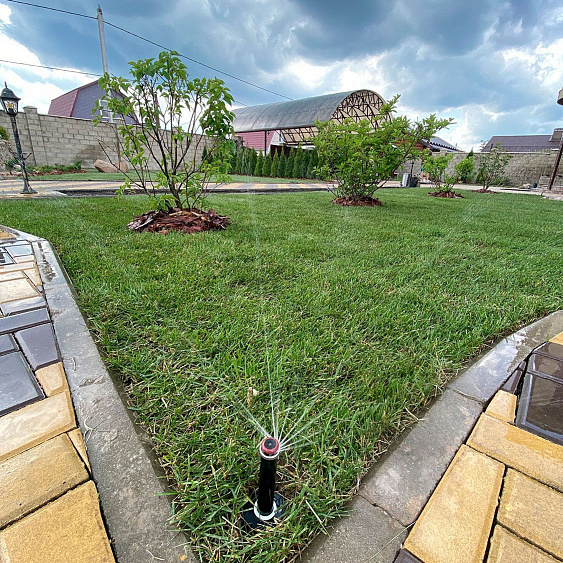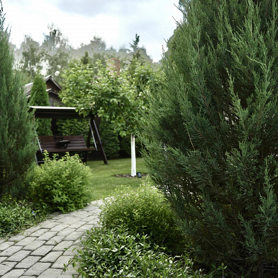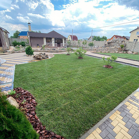 Уютный участок с логичной планировкой, зеленым наполнением и акцентом на семейный отдых без затрат времени на ручной полив.